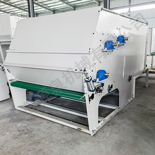 把各種捆包纖維、原料經(jīng)電子稱(chēng)重后,喂入平簾輸送至主體混倉內,再由三道開(kāi)松輥高速開(kāi)松混合后,經(jīng)輸棉風(fēng)機以適量的風(fēng)量輸送纖維原料供后道工作使用。經(jīng)本機開(kāi)松混合后的纖維、原料效果好,混合均勻,以備梳理使用。