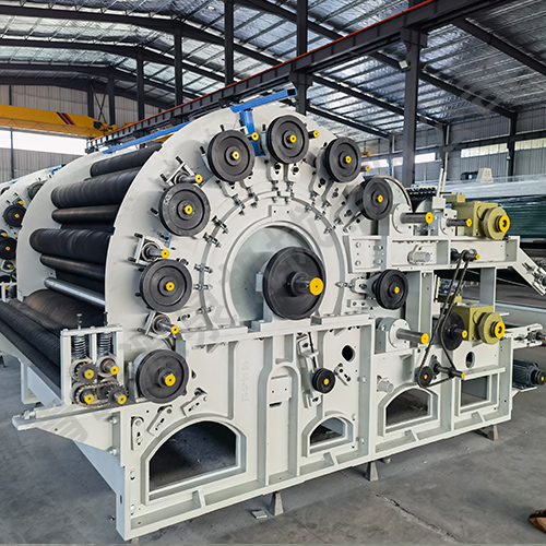 本機采用四羅拉喂入結構,適應滌綸、丙綸等化學(xué)纖維也適應部分天然纖維的梳理成網(wǎng)。鑄鐵機架圓墻板,結構穩定;鈑金罩殼激光下料數控折彎,采用封閉式防護罩,有機玻璃視窗,美觀(guān)大方,罩殼氣缸升降,方便安全。