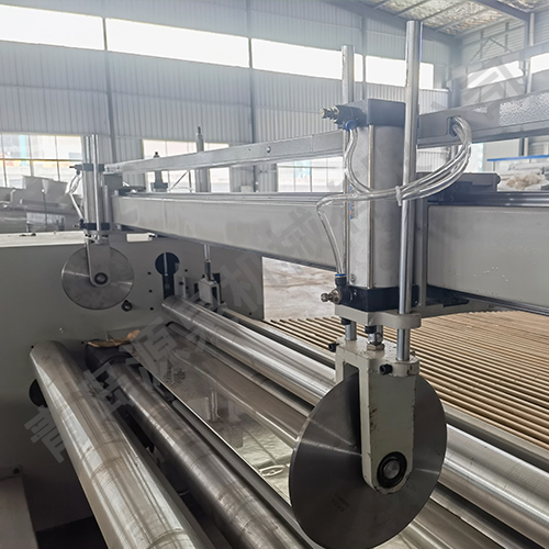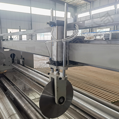 該機器采用飛刀切割或電熱絲方式橫切,并配有四把縱切切刀,其主要用于將噴膠棉、無(wú)膠棉、硬質(zhì)棉等進(jìn)行切邊、收卷并裁剪成符合要求的尺寸規格。本機具有計數功能、跟蹤橫切功能。